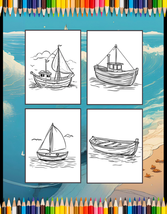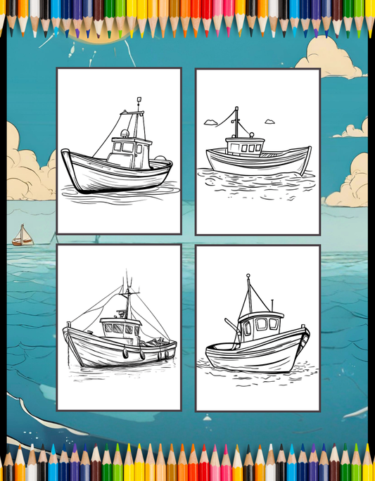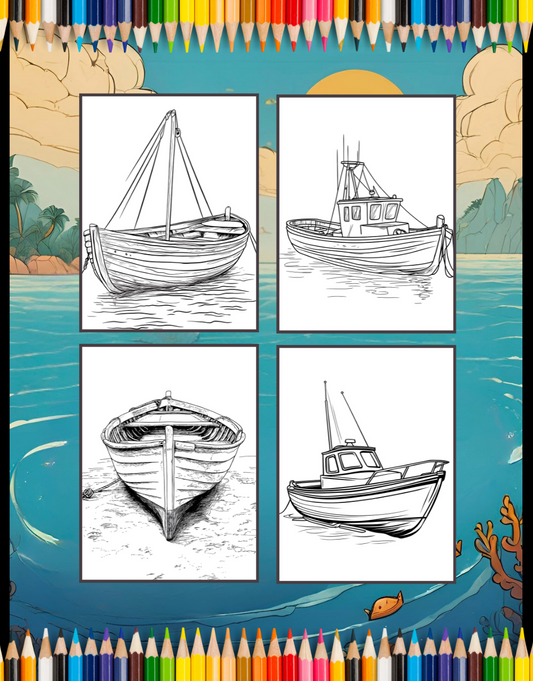 50 Pages Fishing Boat Coloring Book Gift for Adults Kids Men Women Boys Girls Teens Youth Boat Fishing Sailboat Race Boat Lover Relaxation