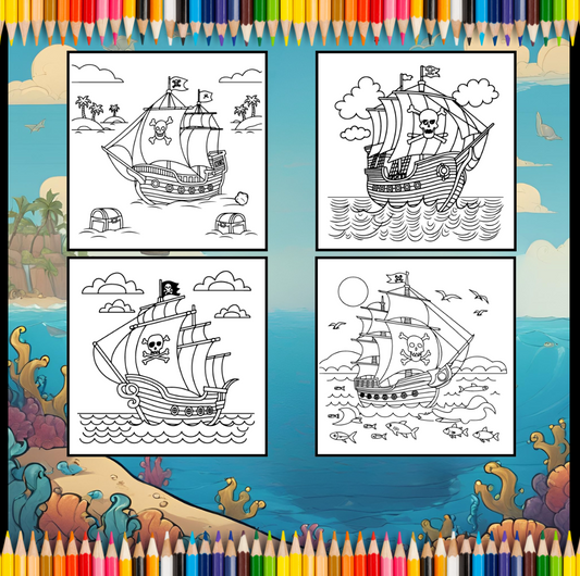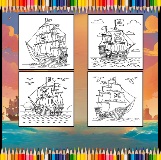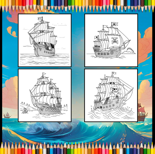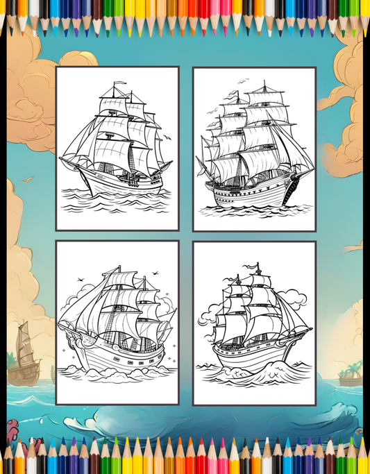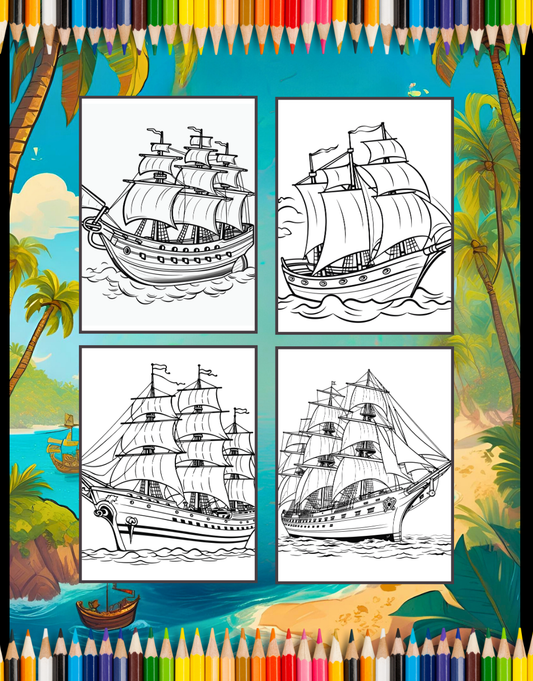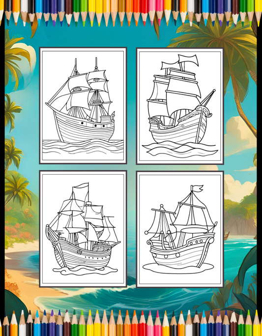 50 Pages Pirate Ship Boat Coloring Book Gift for Adults Kids Men Women Boys Girls Teens Youth Boat Fishing Sailboat Boat Lover Relaxation