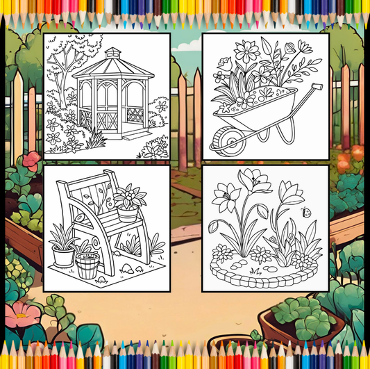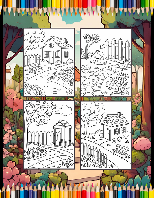 50 Pages Cute Kawaii Garden Coloring Book Gift for Adults Kids Men Women Boys Girls Teens Youth Cool Garden Coloring Sheets for Children
