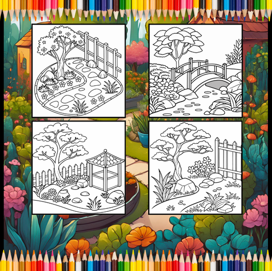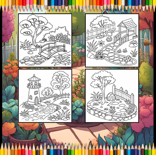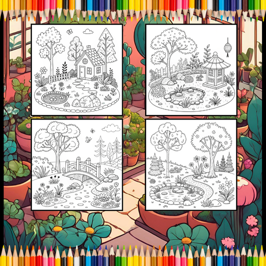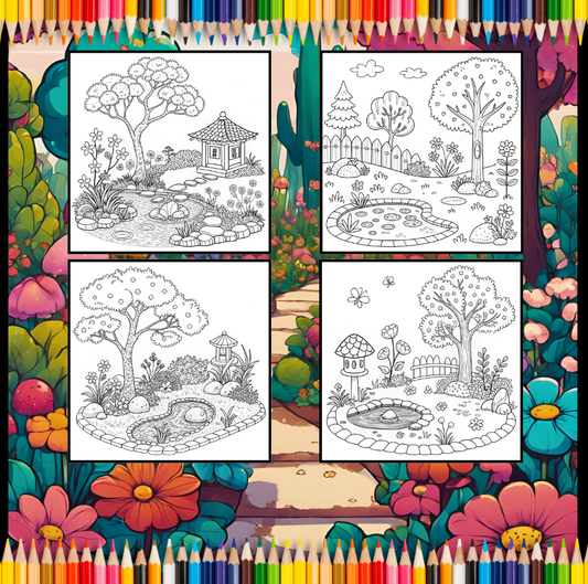 50 Pages Cute Kawaii Garden Coloring Book Gift for Adults Kids Men Women Boys Girls Teens Youth Nature Lover Garden Coloring Book