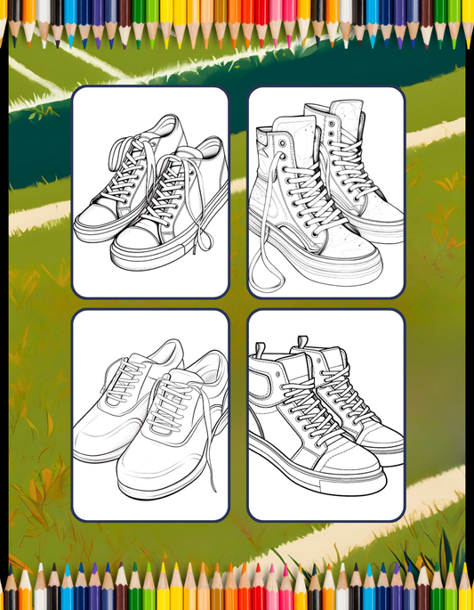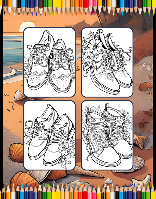 Fashion Shoes Coloring Book Gift for Adults Kids Men Women Boys Girls Teens Youth 50 Pages Cute Sneaker High Heel Men Women Shoes Coloring