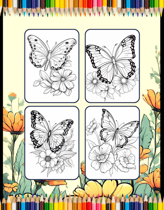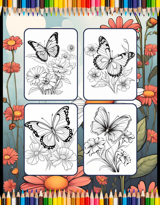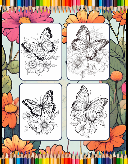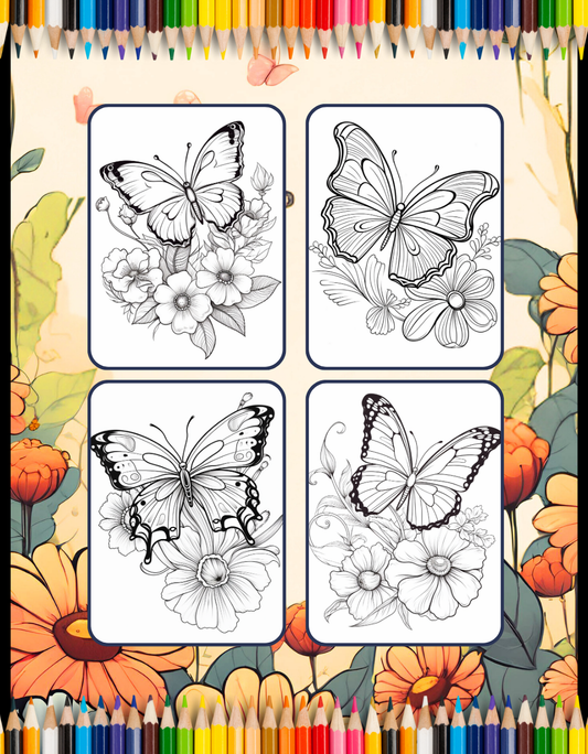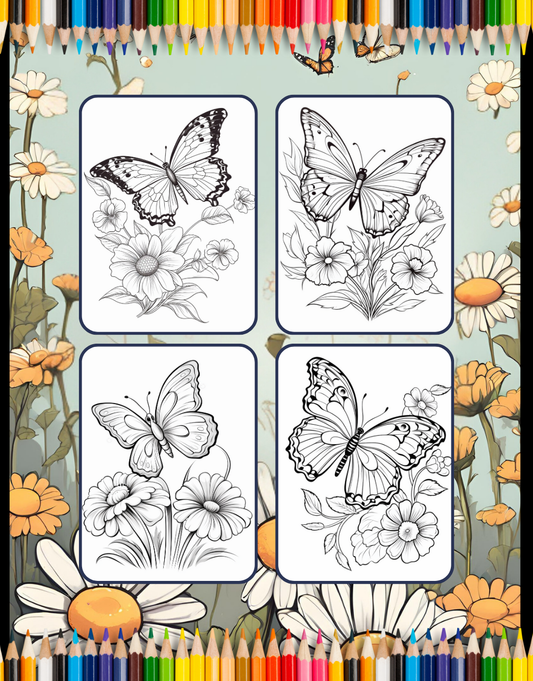 50 Pages Cute Butterfly and Flower Coloring Book Holiday Birthday Gift Present for Adults Kids Men Women Boys Girls Teens Butterfly Lover