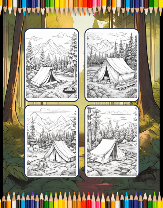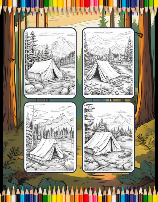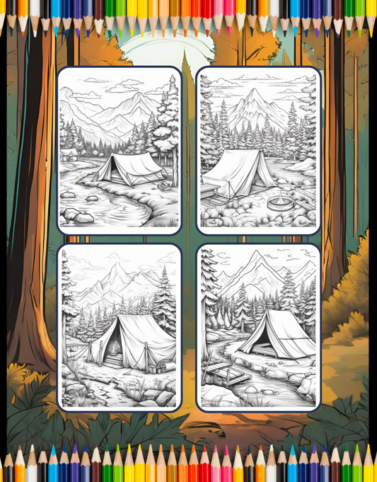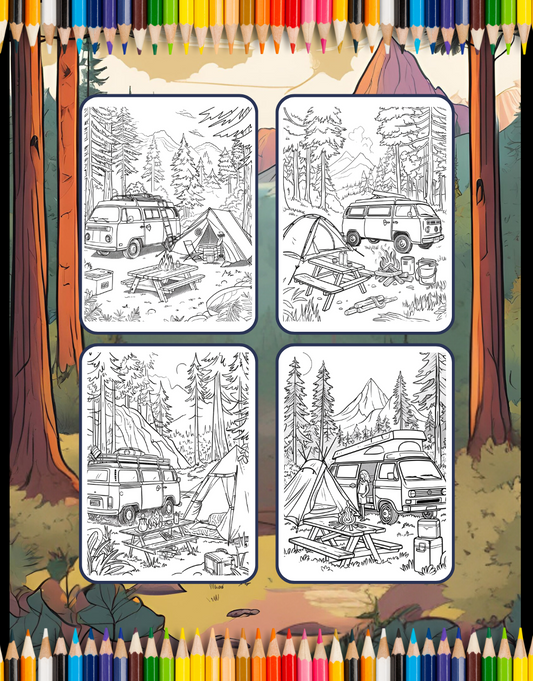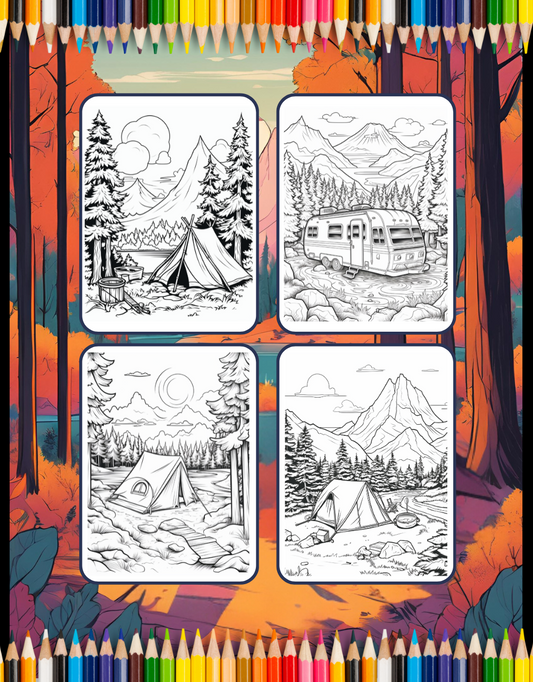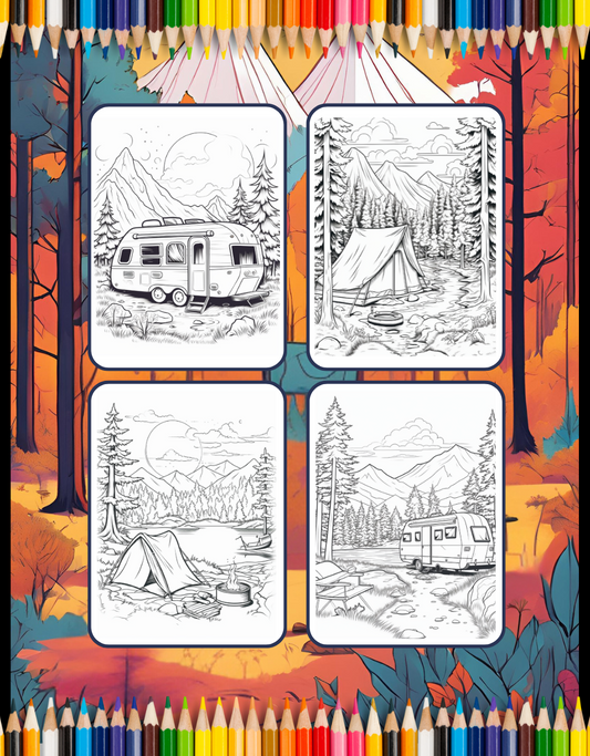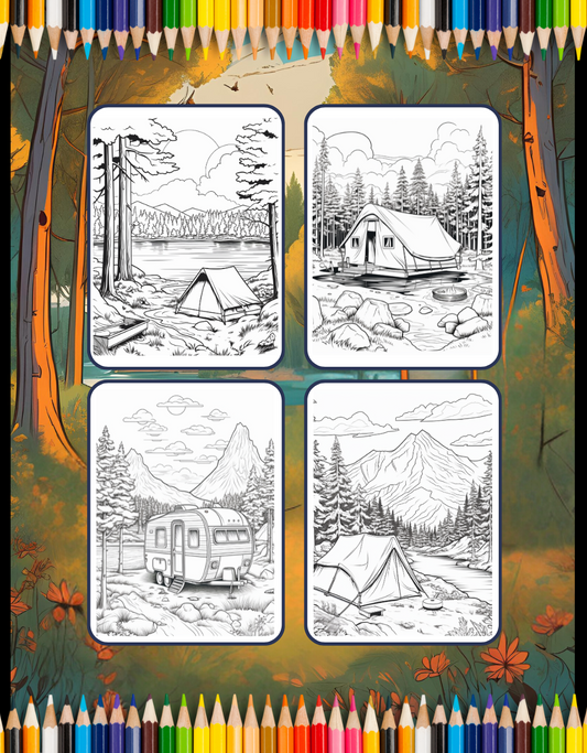 50 Pages Camping Coloring Book Gift for Adults Kids Ages Men Women Boys Girls Teens Youth Holiday Birthday Present Nature Coloring Sheets