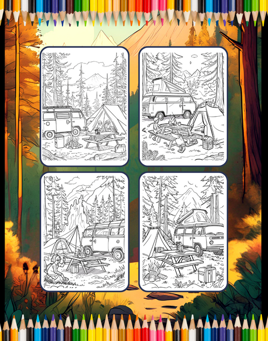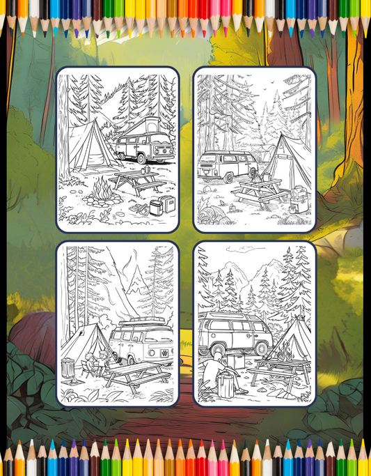 50 Pages Camping Coloring Book Gift for Adults Kids Ages Men Women Boys Girls Teens Youth Holiday Birthday Present Camping Coloring Sheet