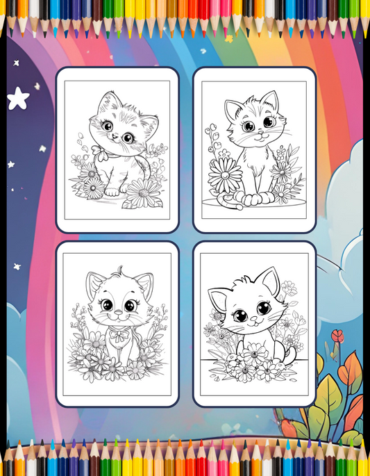 50 Pages Cute Cozy Cat Kitten Kitty Coloring Book Gift for Cat Lover Pet Owner Men Women Adults Kids Boys Girls Teen Bold Easy Coloring Book