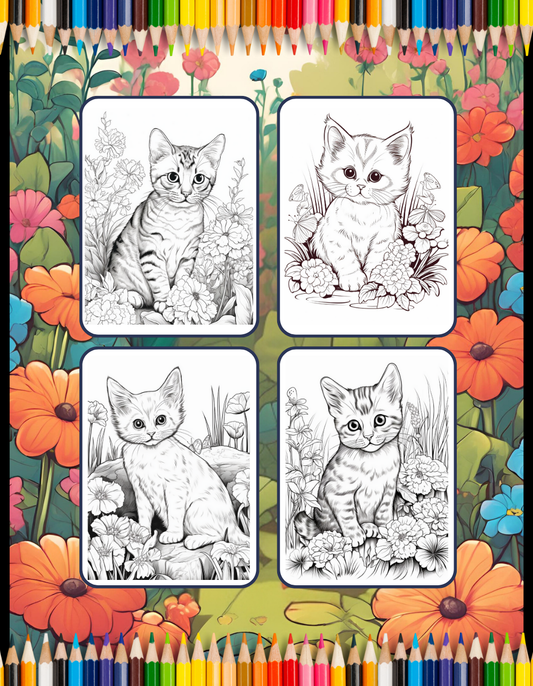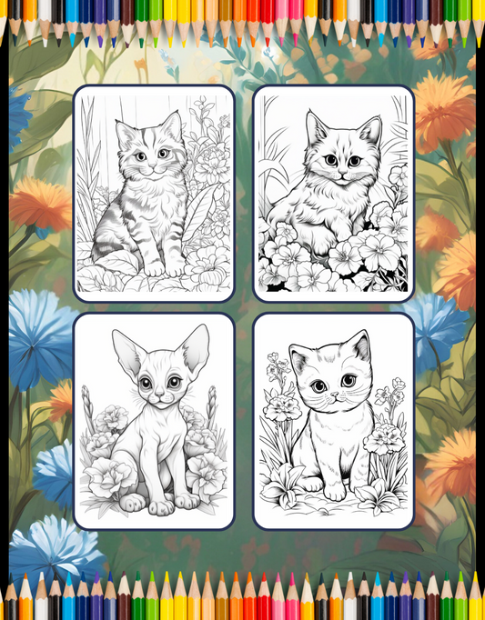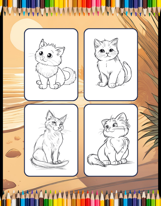 50 Pages Cute Cozy Cat Kitten Kitty Coloring Book Gift for Cat Lover Pet Owner Men Women Adults Kids Boys Girls Teens Funny Animal Coloring