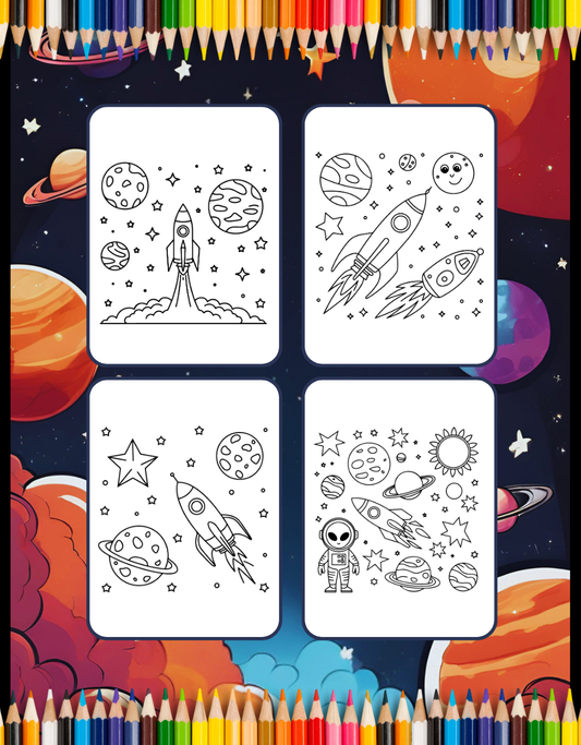 50 Pages Outer Space Galaxy Planet UFO Extraterrestrial Coloring Book Gift for Kids Boys Girls Space Elementary Coloring Activity Book