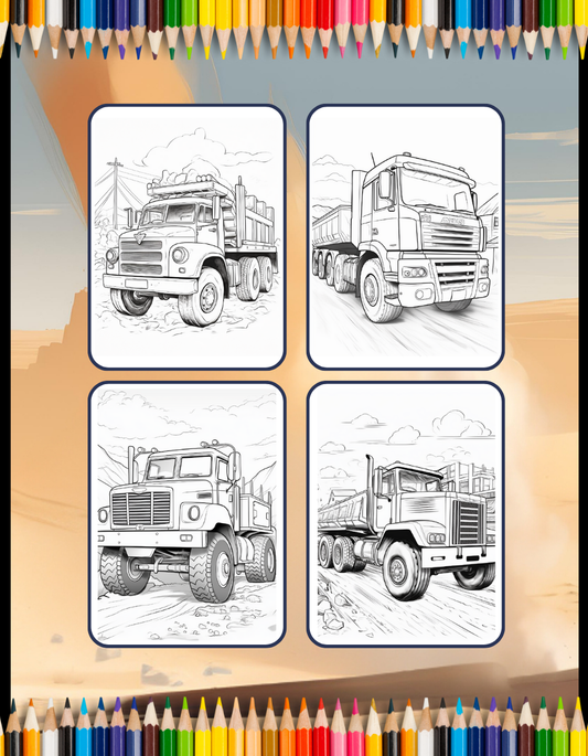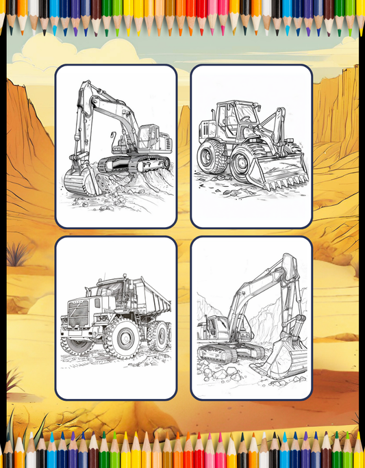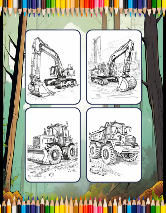 50 Pages Construction Vehicle Coloring Book Gift for Men Women Adults Kids Boys Girls Teens Children Truck Excavator Coloring Pages