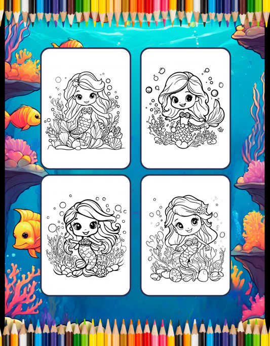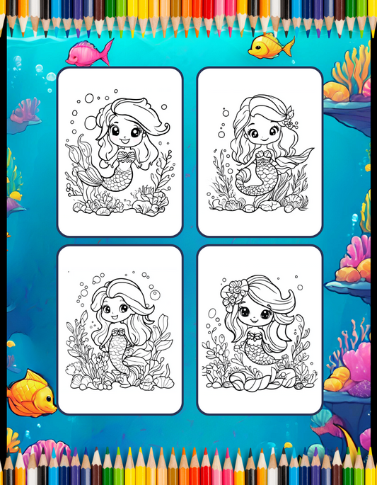 50 Pages Cute Easy Mermaid Coloring Book Gift for Kids Boys Girls Teens Sea Creature Happy Mermaid Coloring Book for Kids Ages 8-12 Toddlers