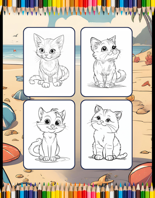 50 Pages Cute Cozy Cat Kitten Kitty Coloring Book Gift for Cat Lover Pet Owner Men Women Adults Kids Boys Girls Bold and Easy Coloring Book