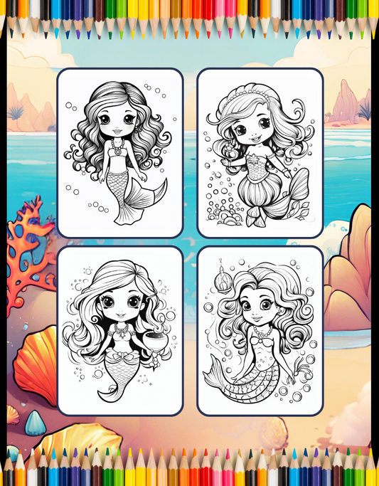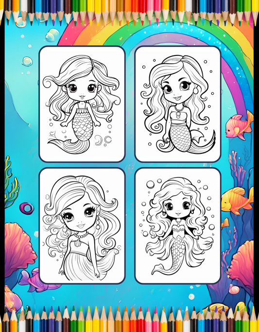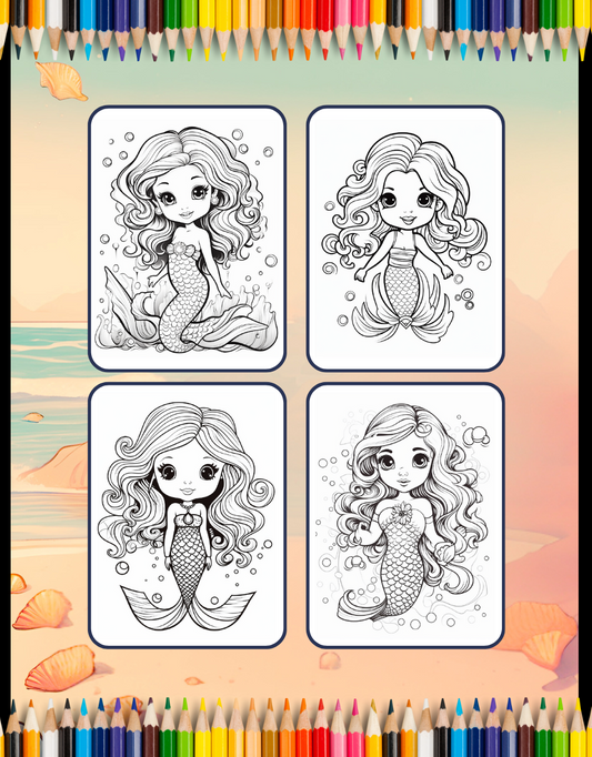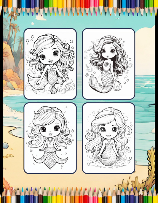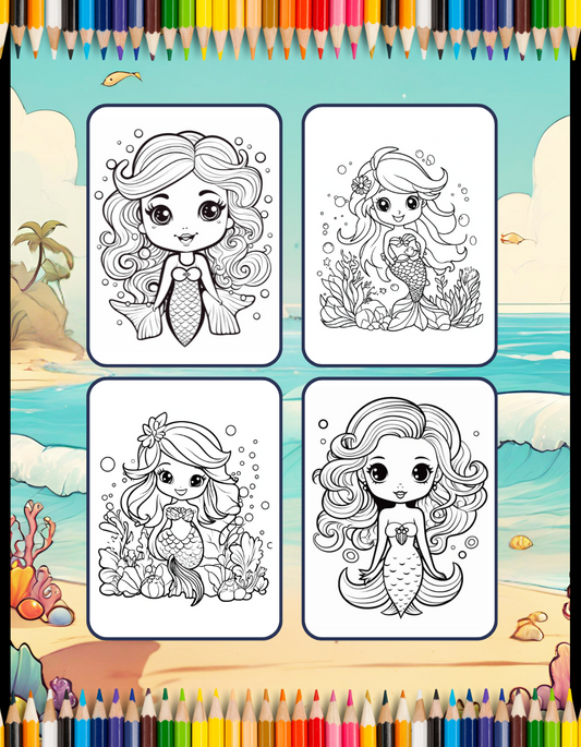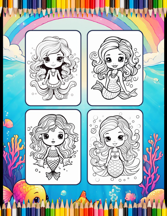 50 Pages Cute Easy Mermaid Coloring Book Gift for Kids Boys Girls Teens Princess Mermaid Coloring Sheets Mermaid Coloring Children Students