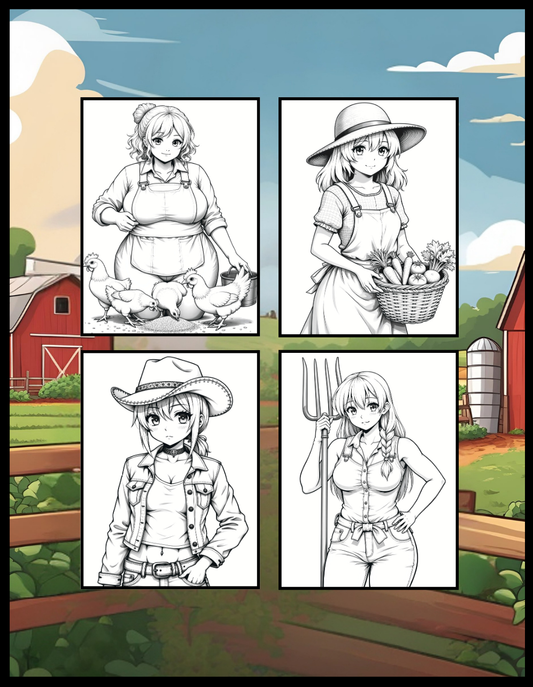 Cute Anime Farm Girls Coloring Book Gift for Adults Men Women Kids Boys Girls Teens Bold and Easy 50 Pages Single Sided Anime Farmer Girls