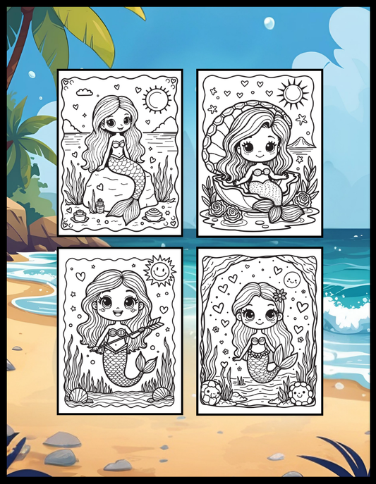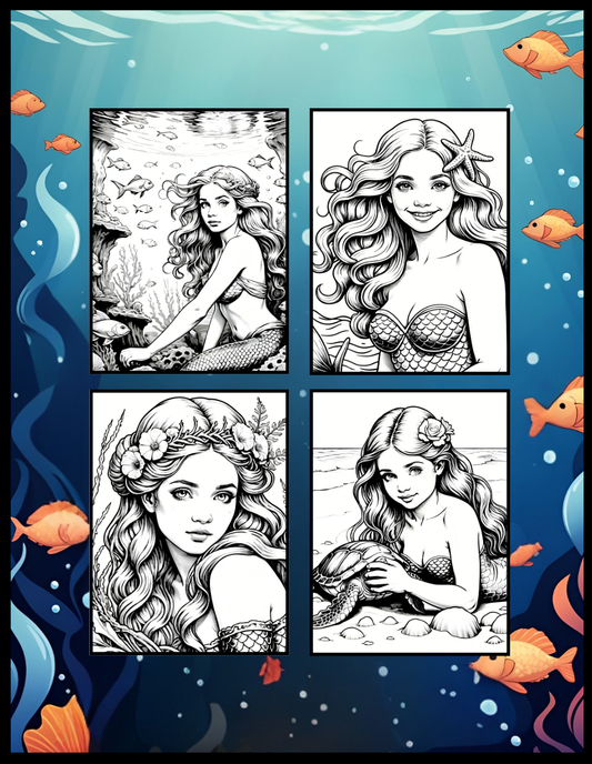 50 Pages Single Sided Cute Beautiful Mermaid Coloring Book Gift for Adults Men Women Kids Boys Girls Young Teens Bold and Easy Mermaid