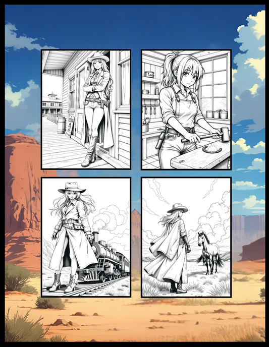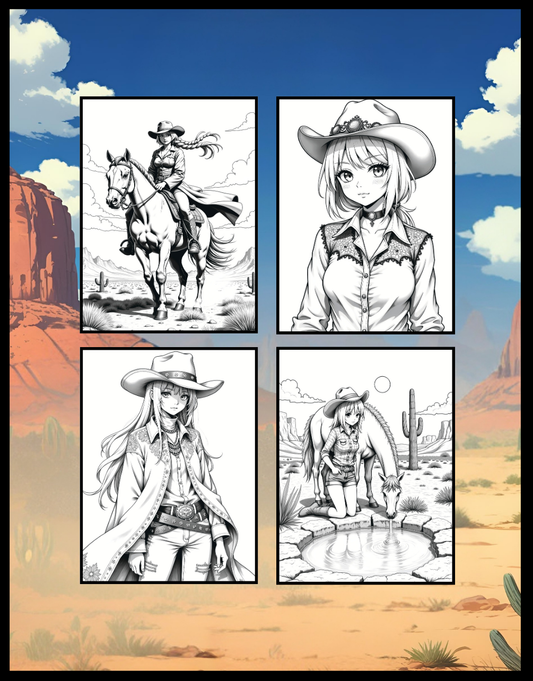 Western Anime Cowgirl Coloring Book Gift for Adults Men Women Kids Boys Girls Teens Bold Easy 50 Pages Single Sided Anime Cowgirl Coloring