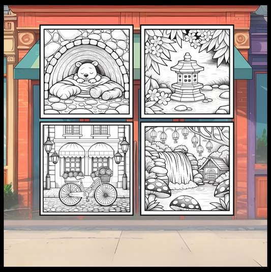 Stress Relief Relaxation Coloring Book Gift for Adults Kids Men Women Boys Girls Young Teens 50 Pages Single Sided Cozy Places Bold and Easy