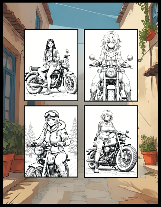 50 Pages Single Sided Cute Japanese Anime Manga Fashion Biker Girls Coloring Book Gift for Adults Men Women Kids Young Boys Girls Teens