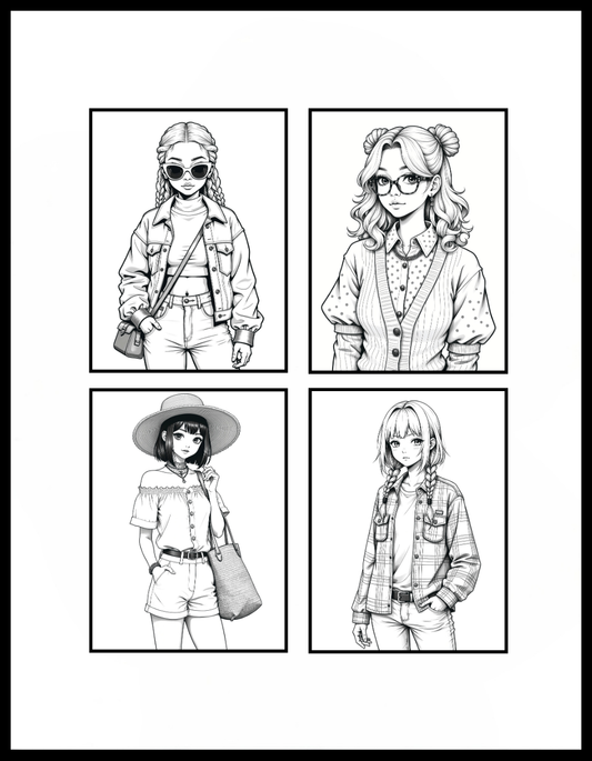 50 Pages Single Sided Cute Japanese Anime Manga Fashion Model Girls Coloring Book Gift for Adults Men Women Kids Young Boys Girls Teens