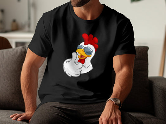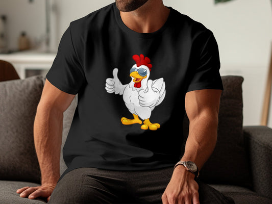 Cool White Chicken Rooster with Sunglasses Thumbs Up Animal T-Shirt Graphic Art Design Chicken Rooster Sunglasses Tees Tshirt