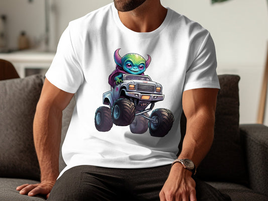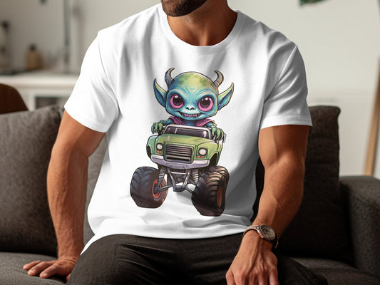Cute Alien Driving Monster Truck UFO Gift for Men Women Kids T-Shirt UFO Alien Truck Driver Birthday Holiday Presents Tshirt