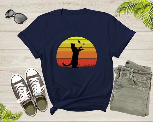 Cute Cat Kitten Animal Playing with Butterfly at Sunset T-Shirt Kitten Cat Owner Lover Gift T Shirt for Men Women Boys Girls Tshirt