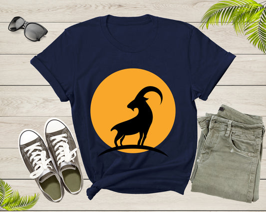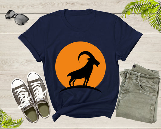 Cool Wild Goat Animal Horn Sunset Silhouette Capricorn T-Shirt Goat Lover Shirt Farm Animal Goat Gift Tshirt Farm Life Animal Lover Shirt