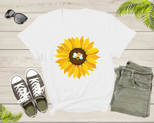 Cute Bumble Bee Yellow Sunflower Blossom Petal Flower Plant T-Shirt Sunflower Lover Gift T Shirt for Men Women Kids Boys Girls TShirt