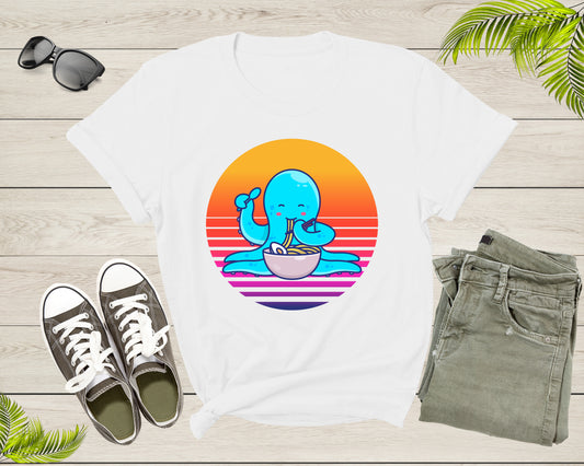 Cute Octopus Character Mascot Eating Japanese Ramen Noodle T-Shirt Octopus Lover Gift T Shirt for Men Women Kids Boys Girls Graphic Tshirt