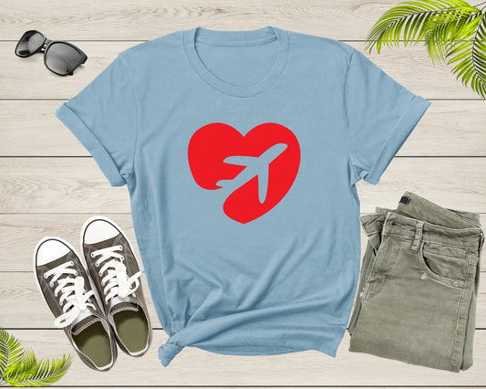 Flying Plane Airplane Aircraft Airliner Jet Love Red Heart T-Shirt Plane Lover Gift T Shirt for Men Women Kids Boys Girls Graphic Tshirt