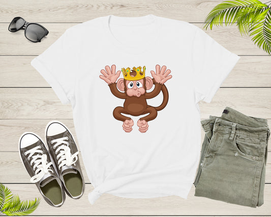 Fun Monkey Wearing King Crown Cute Animal Cartoon Character T-Shirt Monkey Lover Gift T Shirt for Men Women Kids Boys Girls Graphic Tshirt