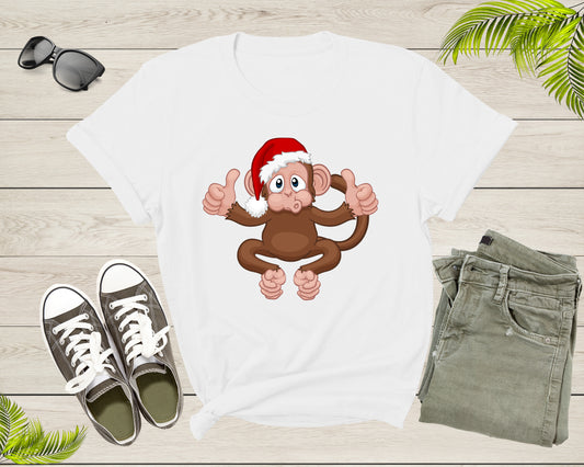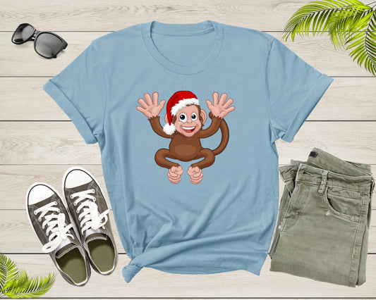 Fun Monkey Wearing Xmas Hat Cute Animal Cartoon Character T-Shirt Monkey Lover Gift T Shirt for Men Women Kids Boys Girls Graphic Tshirt