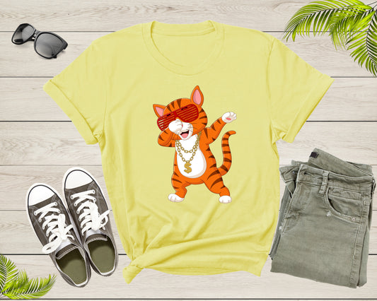 Funny Dancing Dabbing Cat Kitten with Sunglasses Necklace T-Shirt Cat Kitten Lover Gift T Shirt for Men Women Kids Boys Girls Graphic Tshirt