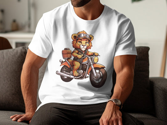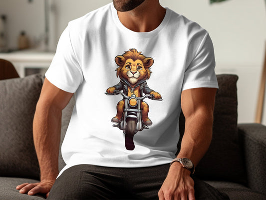 Funny Lion Riding Motorcycle Bike Lover Gift for Men Women T-Shirt Lion Animal Motorcycle Birthday Holiday Presents Tshirt