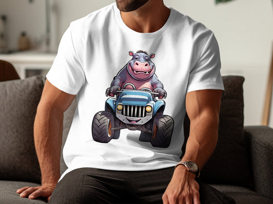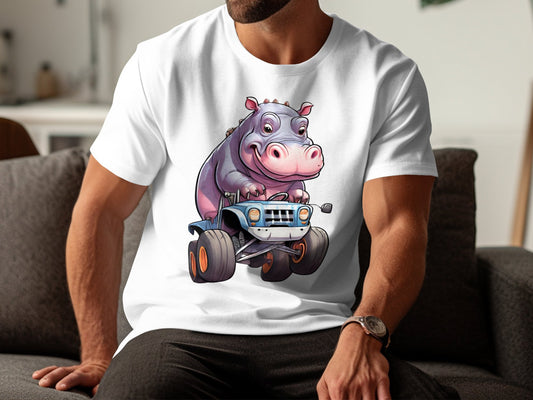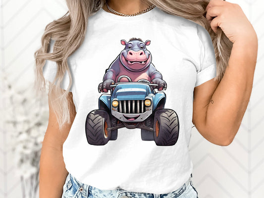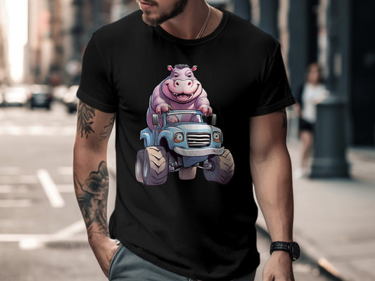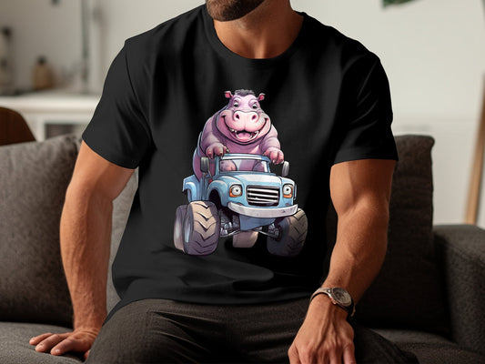 Funny Hippo Driving Monster Truck Gift for Men Women Kids T-Shirt Cute Hippo Monster Truck Birthday Holiday Presents Tshirt