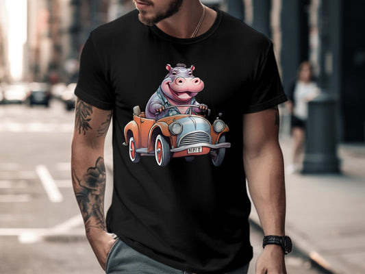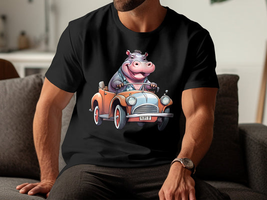 Funny Hippo Driving Vintage Classic Car Gift Men Women Kids T-Shirt Hippo Driving Classic Car Birthday Holiday Present Tshirt