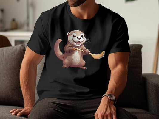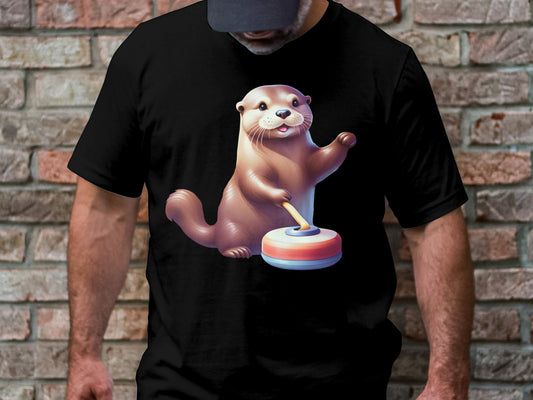 Funny Sea Otter Animal Playing Curling Player Game Day Gift T-Shirt Cool Otter Curling Player Birthday Holiday Present Men Women Tshirt