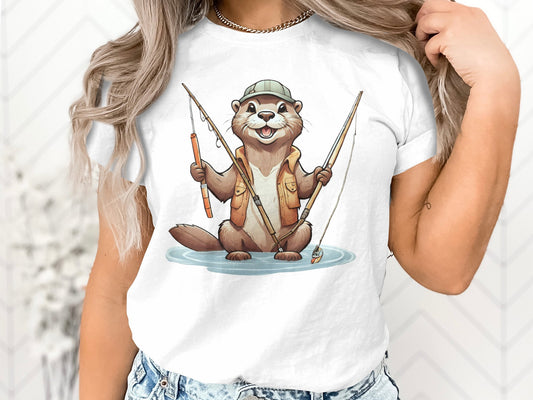 Funny Sea River Otter Fishing Fish Lover Gift for Fisherman T-Shirt Cute Otter Birthday Holiday Present Boys Girls Men Women Kids Tshirt