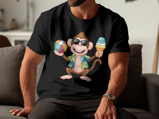 Funny Summer Monkey Vacation Beach Travel Gift for Men Women T-Shirt Ice Cream Lover Monkey Holiday Birthday Present Tshirt