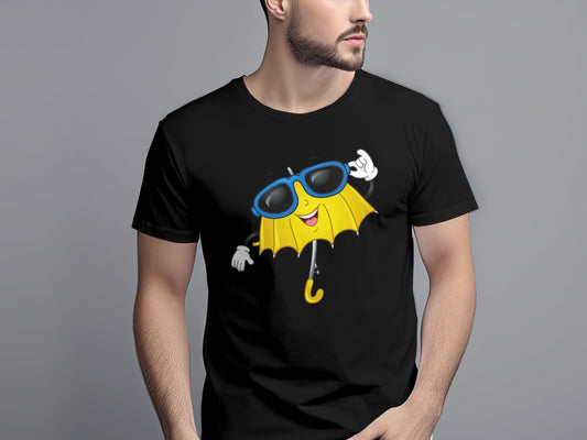 Happy Cool Yellow Umbrella and Sunglasses for Men Women Kids T-Shirt Graphic Design Print Cool Umbrella with Sunglasses Tees Tshirt