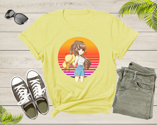 Happy Beautiful Japanese Anime Girl with Hat Manga Drawing T-Shirt Retro Anime Lover Gift T Shirt for Men Women Kids Boys Girls Tshirt