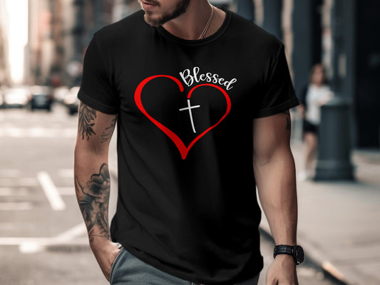 Blessed Heart Christian Religious Faith Inspirational Gift for Religious Men Women Kids Boys Girls T-Shirt