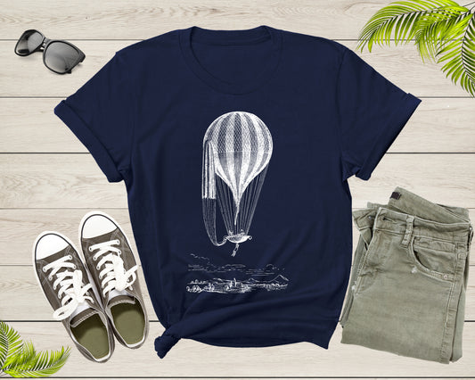 Black White Hot Air Balloon Art Drawing Flying In The Sky T-shirt Hot Balloon Lover Shirt For Men Women Kids Boys Girls Teens Gift Tshirt