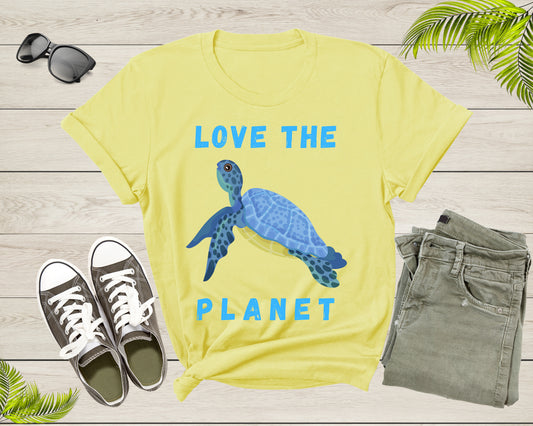 Love the Planet Earth Sea Turtle Swimming for Men Women Kids T-Shirt Ocean Animal Turtle Lover Gift T Shirt for Boys Girls Teens Tshirt