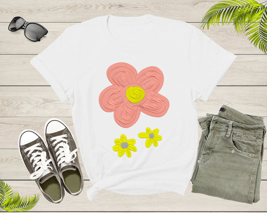 Pink and Yellow Flower Paint Art Colorful Natural Blossom T-Shirt Flower Lover Gift T Shirt for Men Women Kids Boys Girls Teens Tshirt