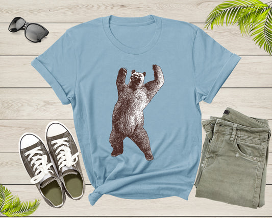Roaring Grizzly Brown Bear Standing on Feet Cool Giant Bear T-Shirt Cool Bear Lover Gift T Shirt for Men Women Kids Boys Girls Tshirt