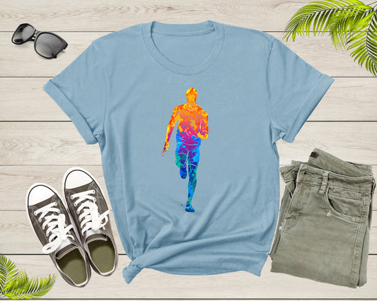 Running Man Colorful Silhouette Man Doing Sport Exercise T-Shirt Runner Running Lover Gift T Shirt for Men Women Kids Boys Girls Tshirt