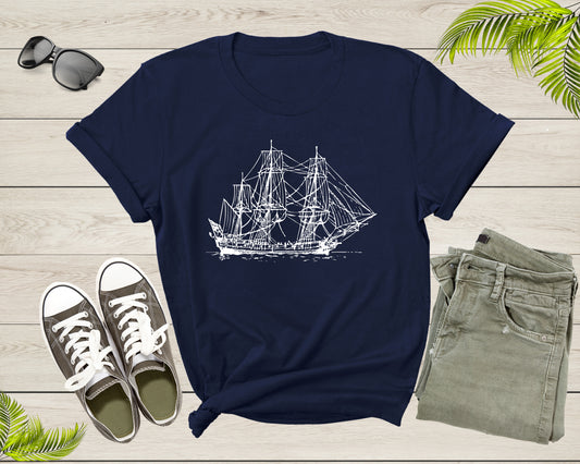 Sailing Pirate Ship Boat in the Water Hand Drawn Vessel Sail T-Shirt Sailboat Lover Sailor Gift T Shirt for Men Women Kids Boys Girls Tshirt