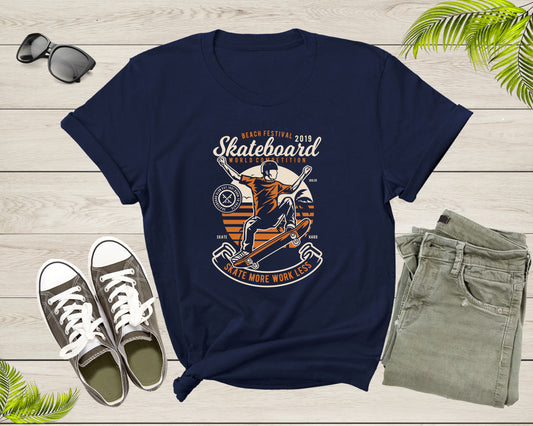 Skate More Work Less Skateboard Skating Skater Kid Sport T-Shirt Skateboarder Skate Lover Gift T Shirt for Men Women Kids Boys Girls Tshirt