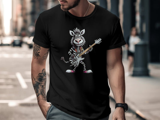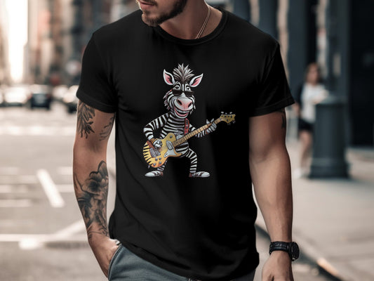 Rock Music Guitarist Stripped Pattern Zebra Horse Print Gift T-Shirt Guitar Player Zebra Horse Birthday Holiday Present Tshirt