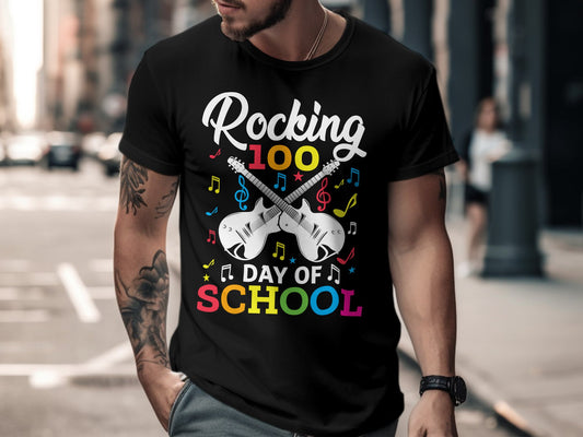 Rocking 100 Days of School Music Gift Item Guitar Graphic T-Shirt Funny Rocking 100th Day of School Music Gifts Tshirt