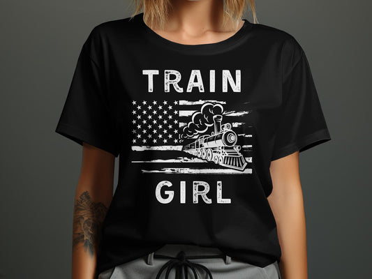 Train Girl Locomotive Tshirt Train Lover Kids Girls Toddler Baby T-Shirt Train Engine Railroad Girl Tee US Flag Train Travel Gift
